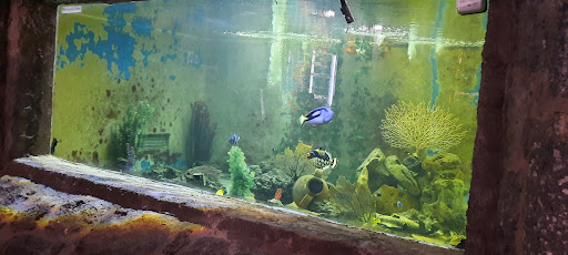 Acquario bellissimo Ho messo 3 stelle un po' per tutta la situazione. Eravamo stritolati tra i tavoli, a mio marito arrivavano certe gomitate durante il taglio della pizza.... confusione assurda che siamo andati via da lì con un mal di testa.... Ovviamente a causa di questo, una lunga attesa per le pizze Per il cibo: buonissimo a parte il crudo che era talmente spesso e poco stagionato che era difficile mangiarlo, e la mia pizza era a base di crudo... Un'altra nota dolente è lo "zoo" esterno... Sinceramente mi è piaciuto avere l'opportunità di vedere delle specie particolari dal vivo, ma erano in gabbie piccolissime anche se grande l'animale e facevano tanta ma tanta tenerezza, la maggior parte sembrava impaurita.... Al solo pensiero mi si stringe...
