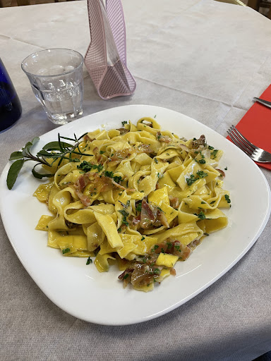 Una vera sorpresa! Una trattoria apparentemente senza pretese in un paese piccolissimo che presenta piatti deliziosi. L'antipasto della casa è abbondante, con crostini dal sapore nuovo, formaggi e affettati genuini, verdurine e creme per nulla scontate, in più presentati benissimo. I tortellini al tartufo sono fatti in casa, buonissimi. E che dire dei porcini fritti, della grigliata e della panna cotta? Tutto superlativo! Abbiamo mangiato sotto la pergola di fronte al prato verde, una...