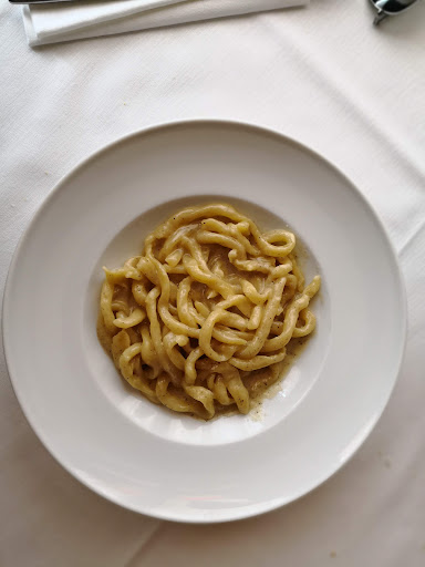 Farò una breve recensione incompleta aspettando di tornare in questo ristorante per avere le idee più chiare. Facilmente individuabile dalla strada principale e con buona possibilità di parcheggio nei pressi Unico neo da fuori si fa un po' fatica a capire se è aperto o meno. Ho ordinato soltanto un piatto di pici cacio e pepe che erano Veramente buoni Il problema era piuttosto l'atmosfera quasi surreale ero praticamente l'unico all'interno del locale oltre al personale. il menu mi sembra molto interessante ricco di piatti tipici E comunque incentrato su specialità locali come affettati o tagli di carne locali e tortelli caratteristici del Casentino. Ma Trovarsi da solo alle 13:00 in un giorno di lavoro in un ristorante peraltro l'unico della zona aperto a pranzo mi è sembrato un po' strano. Un pelo troppo caro il conto di €14 per un primo acqua e caffè ma il prezzo è un problema relativo soprattutto quando si ha la sensazione di estrema qualità . sicuramente molto peggio spendere poco per mangiare male. Per il momento metto 3 stelle ma prometto di tornare per poter fare una valutazione più accurata. il servizio comunque Senza infamia...
