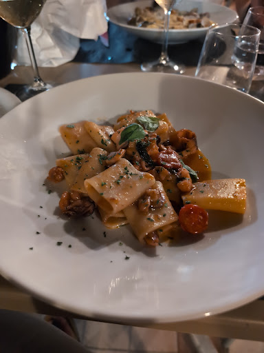 Read moreDas Essen hier ist wirklich sensationell. Wer würde eine solch gute Qualität auf einem Campingplatz erwarten? Wir waren sehr skeptisch, da Restaurants auf Campingplätzen nach unserer Erfahrung meistens nicht die besten sind. Wir waren hier aber absolut positiv überrascht- alle Gänge auf sehr hohem Niveau und auch optisch top angerichtet. Egal ob Pizza, Pasta, Fisch oder Nachspeise - alles geschmacklich perfekt. Waren inzwischen schon öfter hier essen. Nur das Ambiente passt leider so gar nicht dazu, obwohl das Personal immer sehr freundlich ist. Man sitzt z.B. auf Plastik Möbeln, die sich in der Hitze bereits verzogen haben. Sprache: ausschließlich Italienisch. Das ist in Anbetracht der vielen nicht-Italienischen Touristen schon verwunderlich. Es fehlen auch Dinge wie ein Abfallteller für Schalentiere oder Reinigungstücher für die Hände. Die Portionen sind relativ klein, dafür aber wirklich in top Qualität und so kann man ja auch etwas mehr ausprobieren. Preis entsprechend ein wenig höher, wenn man die Menge vergleicht. Aber den Preis ist es wert! Einen Stern Abzug gibt es hier wirklich nur für das...