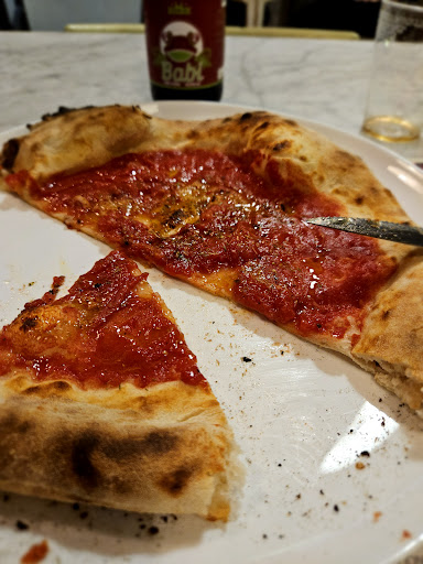 Ciò che rende questa pizzeria ancor più straordinaria è la sua dedizione alle tradizioni napoletane, offrendo pizze senza lievito che mantengono l'autenticità e la leggerezza distintiva della vera pizza napoletana. L'abilità nel creare una base così croccante e saporita senza l'uso del lievito è un vero trionfo culinario.