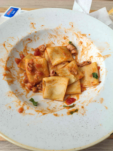 Read moreSiamo stati a pranzo perché stavamo facendo dei lavori dentro il centro e devo dire che i paccheri erano cotti bene , il sugo di pesce in po' banale, ovviamente sugo pronto del marchio stesso. Diciamo che normalmente un pranzo di lavoro completo spendo 14€ compreso vino e caffè, qui un primo e insalata più acqua e caffè senza vino 14,5€ sopra la media nazionale. Però la pasta al dente l'ho apprezzata, e anche la cucina a vista, il servizio non esiste visto che è come un self service. L'ambiente è definito visto che è un centro...