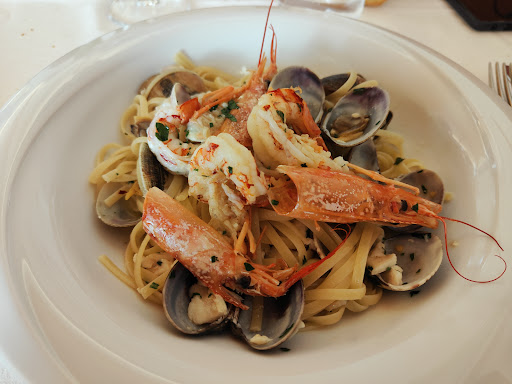 Sono andata a cena ispirata dalle buone recensioni, ma mai più o la gente non capisce niente di cibo o le recensioni sono fasulle,linguine alle vongole pasta con un litro olio olio meridionale fortissimo che non a tutti piace pasta senza sale e io non sono una che mangia salatissimo,non le mangio le mando indietro la cameriera invece di preoccuparsi sbuffa evito discussione e ordino una sogliola alla mugniaia pietà piena di burro bruciato tocco finale sopra il burro capperi acetosi.chiedo il conto 120 euro 2 persone 60 euro a testa non aggiungo ...