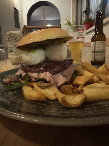 Read moreUn buon locale con tavoli all'interno e una cartina ambientazione esterna. Ottimi panini e selezione di birre, patatine perfette e dolci buoni. Un unico appunto sulla temperatura dei panini, che dovrebbe essere più alta specie del pane che era quasi freddo... Mi raccomando è capitato due volte di seguito per questo ho messo una stella in meno, vedremo alla...
