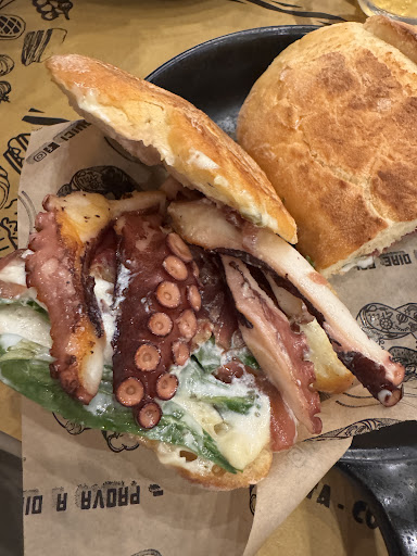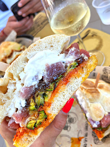 On the quiet lungomare you can find this nice spot where you will find delicious food at decent price.. you can see meat and fish are fresh and well presented. Orderedna fish panino TONNO TONNO which means Tunafish.. with delicious tuna tartare and well dosed dressing such as almond bits, yogurts sauce, rocket and caramelised tomatoes. Having a look at the other tables I could see hamburgers, delicious baked potatoes.. and different choices of bread. Considering the area and the average price of same kind of bistrot and restaurants I can say it was very good. 15€ panino+ lager bottler beer. Service very nice and professional. Couldnt find anything wrong.. wasnt even crowded for a august thursday night.