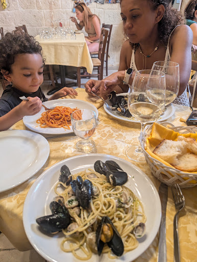Read moreRistorante da sconsigliare... alle 22:00 avevano già terminato quasi tutto, non si è potuto scegliere cosa mangiare perché "non hanno il menù" hanno portato solo 3 portate di antipasti freddi (solo carpacci) e due di antipasti caldi, un piatto di " crudo di mare che consisteva in una manciata di cozze nere e una di cozze pelose e infine un primo piatto, dove abbiamo potuto scegliere... o i paccheri o la linguina allo scoglio, si fa per dire "allo scoglio" (c' erano solo cozze, lupini e un minuscolo scampo), l' unica volta che abbiamo potuto scegliere ci è andata male perché abbiamo scelto le linguine affogate in acqua di cottura e olio. Questo "avanzo di serata" ci è costato 70 euro (2 persone) e tra l'altro il proprietario ci ha fatto capire che il prezzo è stato arrotondato a suo dire, perché non abbiamo ricevuto alcun scontrino. Infine personale scadente...