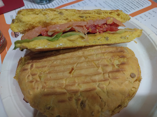 Decisi di provare il locale poco dopo l'apertura...non tornai più, avevamo ordinato un panino verso le 23 ma al tavolo giunse dopo un ora e mezza . Passato ormai del tempo ho riprovato l'esperienza recentemente e devo dire che mai come prima d'ora mi son resa conto di quanto i lavoratori delle attività commerciali se nel tempo apportano le adeguate modifiche alla loro attività commerciale apporteranni vere e proprie modifiche al servizio offerto . Tutto perfetto, la baguette buonissima , il personale gentilissimo e disponibile ...l'unica cosa da migliorare sarebbe la porta d'ingresso che quando c'è vento si spalanca da sola facendo raffreddare mlltissimo l'ambiente e provocando raffiche di vento freddo addosso e sui tavoli . Nonostante questo piccolo dettaglio però lo consiglio , ci ritornerò...davvero...