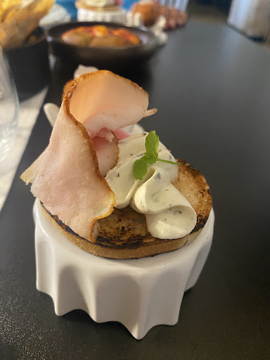 Read moreSiamo venuti per curiosità, avevamo visto il menù in internet. Sono andato in bagno, al piano interrato, proveniva un cattivo odore di fogna, non so i motivi, irrespirabile. Lavandino piccolissimo! La tavola preparata bene, senza tovagliato, minimale. Ambiente sobrio. La Ferrarelle in bottiglia, poi ci hanno portato come entrata, focaccine con cipolle in agrodolce e spinaci, arancini di riso aromatizzati con la senape, tutto buono. Antipasti con tomini, conditi con albicocche candite, buoni. Poi carpaccio di manzo, lonzino, ben preparati, polpette di pane, flan di parmigiano conditi con cips di zucchine e capocollo croccante. Un primo con gnocchi di zucca, molto delicati, conditi con cardoncelli e rucola fritta, buoni. Un altro primo, paccheri freschi conditi con fonduta di caciocavallo, datterini gialli, capocollo croccante. Questa croccantezza non si percepiva, anzi. Un secondo con filetto di maialino con vino rosso al ginepro e purea di mele, delicato. Un vino rosso, negramaro e primitivo della cantina Morella del Salento, 14.5°, corposo e fruttato, pieno. Personale molto gentile, disponibile. Peccato...