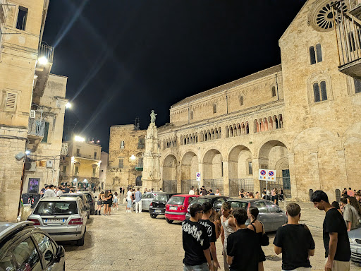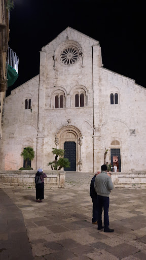 We enjoyed the apparent madness of the place but we were in no hurry, killing time before early to bed for an early flight the next day. One very personable young man appeared to be setting up tables as required, waiting on tables himself, cooking the food in the kitchen on his own and serving drinks and operating the cash only til. As a result the meal took ages, although beers kept coming and our host would disappear for longer spells as he cooked. He was charming, apologetic and took time to explain his philosophy! The food was ok, individual starters on their own were a little small but we had opted not to have the full anti pasti starter. All customers ate outside in the small courtyard a few metres from the cathedral walls and a lively square, lovely. Inside the trattoria was beautiful. I have a sense it isn't always like this but who knows, we might look in again next time we are there for a flight....