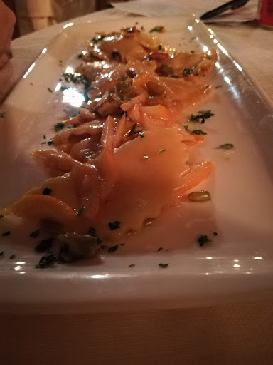 Read moreLa storica taverna mantiene ad oggi il fascino così com'era 35 anni fa. Purtroppo non si può dire altrettanto per quanto riguarda il rapporto qualità prezzo. Mi spiego meglio: in 3 abbiamo consumato 3 antipasti di selvaggina formati da 4/5 fettine di bresaola di cervo e cinghiale, 4/5 fettine di salame di cervo e cinghiale e 3 cipolline; un piatto composto da una dozzina di sciatt. Poi due tagliolini freschi ai finferli, quindi una costata tipo fiorentina di Angus del peso di circa kg 1,5 ovviamente divisa in tre; un dessert; 3 caffè ed altrettanti ammazzacaffè (due di pregio e un amaretto); una bottiglia di vino rosso del Trentino ed una di bollicine Franciacorta. Totale conto: € 282!! Tra l'altro da segnalare che la costata era cotta troppo ed è stata servita irrorata in superficie di sale grosso che rendeva il sapore troppo aggressivo (io mangio quasi insipido ed il sale in eccesso non posso certo toglierlo mentre chi mangia saporito può sempre aggiungerlo); inoltre la parte grassa della costata aveva stranamente sapore ed odore che ricorda la carne di montone! Insomma, personalmente non sono uscito dal locale soddisfatto per la cena consumata. Forse abbiamo semplicemente sbagliato la scelta della pietanza ma il prezzo è comunque apparso sproporzionato al consumato. Mi dispiace ma questo è il mio seppur...