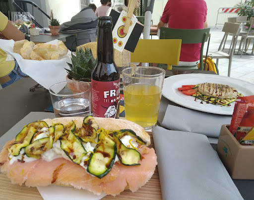 Read moreCameriere molto disponibili e gentili. Buonissimo, panino al salmone, hamburger di tonno, sidro piccante e patatine, che non necessitavano neanche di salse da quanto erano saporite😋 Lascio parlare le foto, che spiegano meglio😁 ...particolari e divertenti anche i segnatavoli con le carte piacentine!🃏 Buono anche il caffè☕