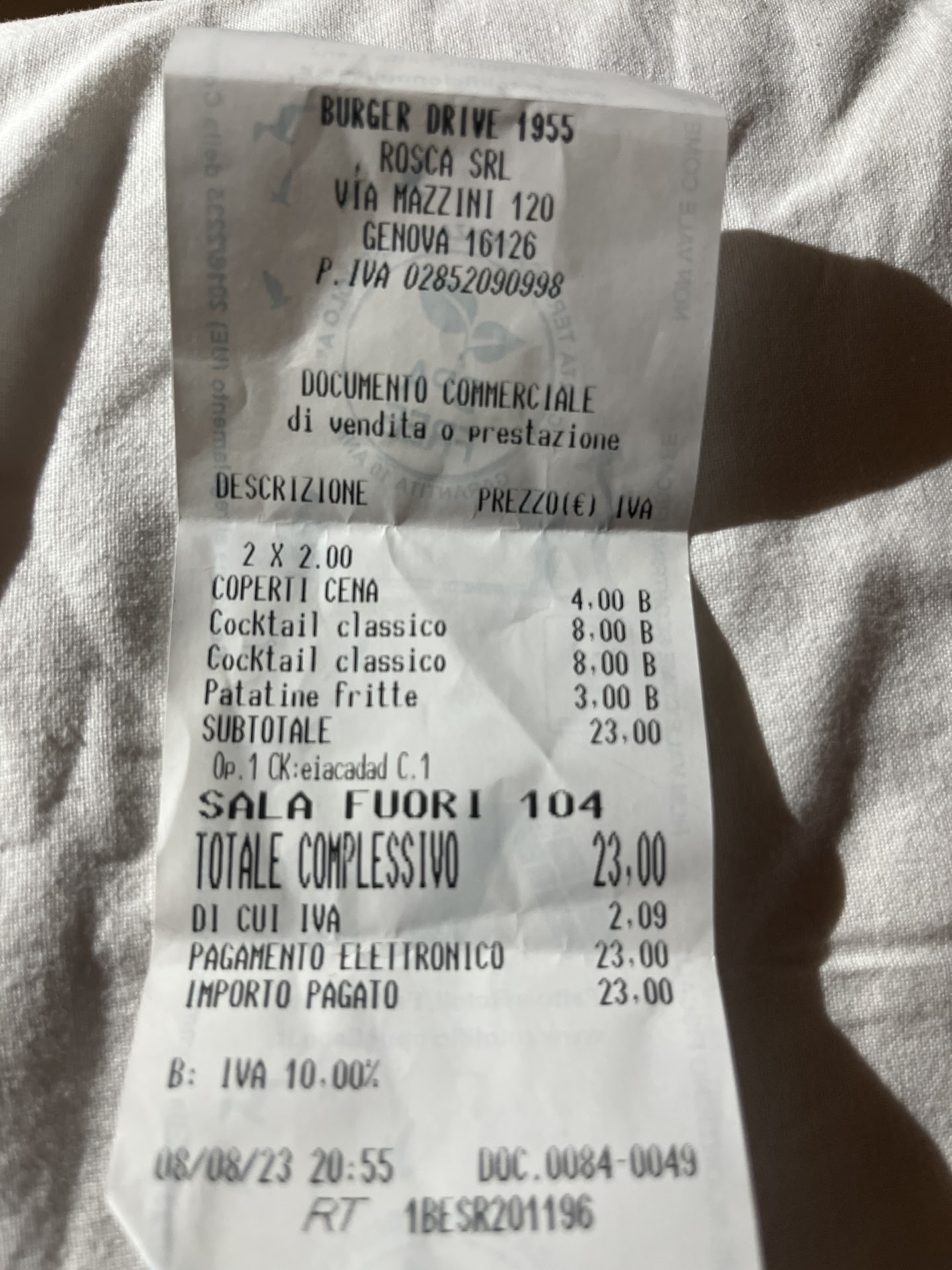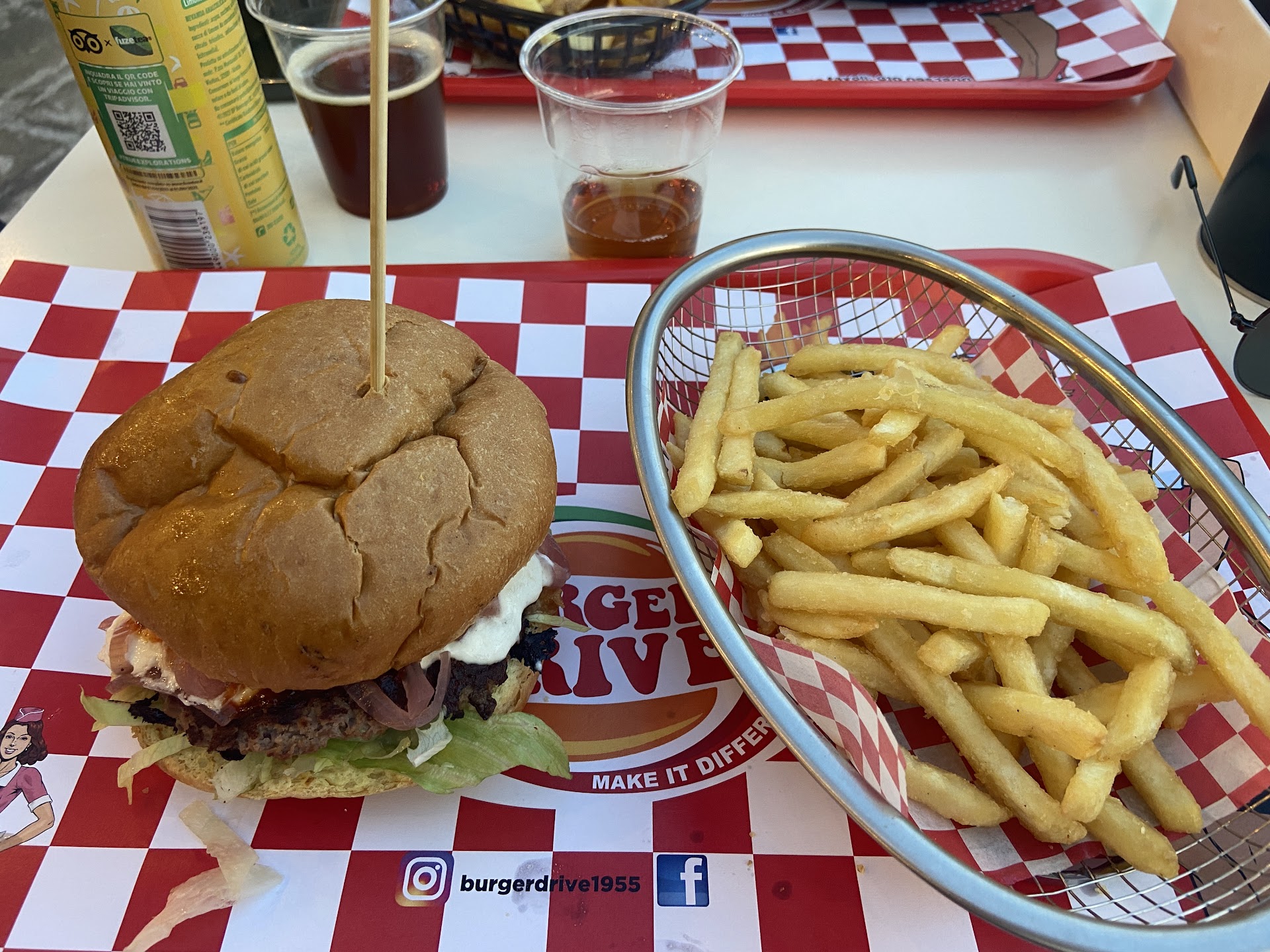 Read moreI'm the type of person who likes to read reviews prior to dining somewhere but today was a very hot day in Bogliasco and Burger Drive seemed like a nice rescue from the heat. My daughter had the calamari cone, I had the crispy chicken wrap and we shared fries. Attentive server and good atmosphere. Food was brought to us quickly. Would...