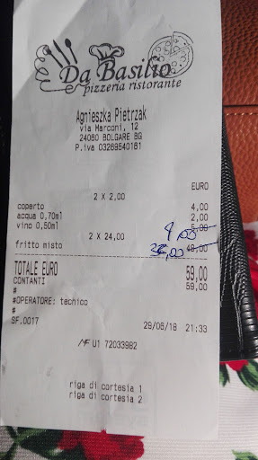 Read moreIeri sera sono stata con mia mamma a mangiare in questo locale. Abbiamo ordinato due fritti imperiali (nel menu costavano 16 euro) un quarto di vino (nel menu costava 4 euro) e una bottiglia d'acqua (2 euro). Il cibo era davvero molto buono e la porzione era giusta per il prezzo scritto nel menù. La sorpresa è stata alla cassa quando ci è stato detto che il totale era 59!!! Sorpresa ho chiesto quanto costasse il piatto che avevamo ordinato e mi è stato risposto che il fritto costa 24 euro, al che ho chiesto di dimostrarmelo dal menù e si sono "resi conto" che ci stavano facendo pagare 8 euro in piu a piatto e un euro in più il vino... Non tornerò mai più in questo locale..se ci andate segnatevi i prezzi perché lievitano magicamente! (Allego la foto dello scontrino corretto in biro dal personale di...