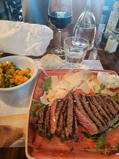 Read moreVeramente una bella esperienza. Locale molto bello e con tantissimi coperti. Ideale per pranzi di lavoro e non. Aperti anche a cena. Offrono una vasta varietà di menù fissi per tutte le tasche. Ho pranzato con menù fisso ed ho preso una tagliata con contorno, calice di vino, acqua caffè e coperto ed ho speso 18 euro. Rapporto qualità prezzo imbattibile. La carne era succosa e cotta a regola d'arte. Ma ci sono menu anche a meno e completi di tutto. Servono anche la pizza e il pesce, oltre ai primi. Il locale era veramente molto affollato ma il servizio è stato molto rapido e professionale. È stata una piacevole scoperta grazie all'Hotel Gold, in cui alloggio che me lo ha consigliato. Hanno anche una convenzione con loro per la cena (chiedere prima per conferma). Lo consiglio caldamente e ci tornerò sicuramente. Bravi tutti, dai gestori, ai ragazzi in sala ed ai cuochi. Si percepisce un'alta...