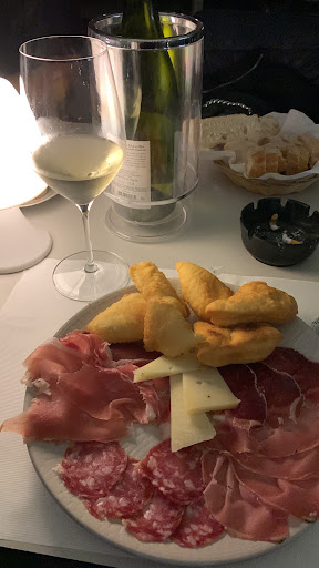 L'Enoteca si presenta fin da subito un luogo molto tranquillo. Pochi coperti disponibili ma a mio gusto meglio, meno caos e più tranquillità nel poter parlare con i propri amici. Personalmente abbiamo preso due taglieri salumti/formaggi doppi + gnocco fritto (se non ho fatto male i conti erano 32 gnocchi, 8 a testa visto che eravamo in 4). A parer mio la quantità è buona, avrei preferito una maggior varietà ma perché sono così io. A vedere gli altri tavoli anche le altre scelte, come ad esempio i primi, sembravano veramente molto buoni. Più che buona scelta di vini disponibili, con la possibilità di scegliere tra calice o bottiglia (a seconda del vino, visto che per una bottiglia pregiata non la si "spreca" per un calice). La cosa che mi fa storcere un po' il naso, vista la città/zona (Bollate, con rispetto), sono i prezzi abbastanza alti per quanto offerto. Il conto, con 2 taglieri doppi+gnocco,birra 33cl artigianale,3 calici di vino, ~90€.