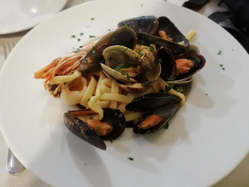 Read morePersonale gentile, io personalmente ho provato due primi e un fritto misto.. spaghetti alle vongole insapore ma dalla fame li no mangiati, le vongole non avevano nessun tipo di sapore e le ho anche lasciate (non ho mai lasciato le vongole in nessun ristorante anche se non erano delle migliori), passiamo all'altro primo pasta al ragù di cinghiale beh quella era buona peccato che il piatto non era per me ma di chi stava con me😂. Per saziare il mio appetito e voglia di pesce allora ho preso il fritto misto che anche quello finito per pura fame, piatto povero 4 gamberetti anch'essi insapore 😂 e dei calamari gommosi.. il vino era buono! Ritornerò per la pizza visto che tutti mangiavano solo quella sicuramente sono più...