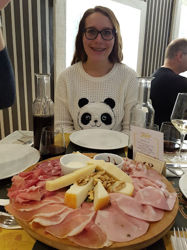 Pasta is the most traditional ingredient of Italian cuisine. So we decided to lunch at a typical restaurant serving good pasta. And it's a restaurant in the historic part of Bologna, "Adesso Pasta". We were not fooled, it was a great choice. At the site where the Pasquini brothers' trade in fabrics used to be, it's now a great restaurant. A location with a breathtaking view of the historic city center in a historic building. An experience for palates and eyes. The choice of paste is good and quality. Starters was Tagliere di salumi e formaggi accompagnati to confetture, miele e frutta secca ( Cold cuts and cheese platter accompanied with jams, honey and dried fruit). We ate Gramigna con salsiccia, Tagliatelle al ragù, Tortelloni con formaggio, Farfalle con proscutto e piselli ( Gramigna with sausage, Tagliatelle with meat sauce, Tortelloni with cheese, Farfalle with ham and peas). Everything was delicious. The wine was also great ( Trebbiano di Romagna). The service was very good, the staff friendly. We enjoyed every bite, in a word, bravo...
