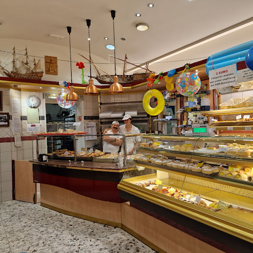 Appena giungi ed entri vieni colto da quasi FELICITA': l'ambiente pulitiss. ben illuminato e decorato da 2 meravigliosi "Brigantini ?" dell'800, Materassino, Palloni, giochi da Spiaggia. Ottimo stimolo ke ti riporta al Mare, con le sue Onde, la Sabbia e le Conchiglie. Ma, naturalm., ogni bendiDio di leccornie: Briosche ripiene, Pizze, Crescente c/salame, Paste, Torte,pane... RAGAZZI! Venite a vedere di persona..sarete soggiogati e...saziati. Quello ke mi è piaciuto tanto e' stato poter sorseggiare anke un Caffe' ed 1 Bicchiere di Latte ottimo, CALDI.