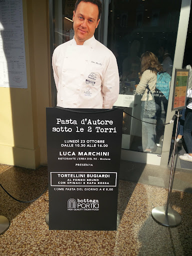 The restaurant is placed right under the iconic Due Torri in Bologna and has a beautiful terrace directly that faces them, proving an almost unique experience while dining. The interiors are all modern, sleek and clean, and with the terrace being difficult to find a table in because of how crowdy it gets they make for an overall ok alternative. The biggest downside is probably its food though, and with Bologna being a city so famous for its typical dishes it's a shame that the food quality is not on par with the rest. Dishes are still ok and definitely enjoyable, but due to how popular the place is one would expect them to be a bit better: they're not bad in any reason, but if you're looking for a fine place to dine and enjoy quality food look somewhere else. Table service is also inexistent: not only you're required to go pick up your order, but they also require you to get everything off the table once you're done (the waiters were also pretty rude in asking us to do so too). Granted the food is not that exceptional, at least the price is not too high and finding a table on the terrace is probably the only way you're gonna be able to have lunch right under...