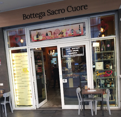 bar, fabulous wine bar, you can taste different varieties of wine and champagne, salumeria and cheeses from Bologna and Calabria, uhhh very good, many selections and excellent quality of the products, we are very grateful for the service staff, a very familiar and welcoming place, with good music to have a good time at aperitifs, birthday parties, graduations and very close to the train terminal...absolutely if you come to Bologna Bo forget to go through the BOTTEGA SACRO CUORE...Ah they also offer quality...