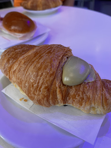 Read moreWe had breakfast in here because the choices available to enjoy a croissant were outstanding. Pistachio croissant, nocciola croissant, "regular" croissant, a small "mortadella" croissant, and two latte macchiato were less than 10€, which is a great price. Croissants were good, not the best I had, but definitely worth it. Lattes were served as they should be, with a small glass of water on the side. You can have a sit inside and enjoy the AC, or outside...