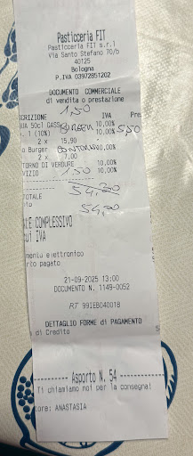 Read moreDa evitare con cura. Escludendo gli alcolici, da bere acqua o una tonica inglese al basilico contenente zucchero, quando si sbandiera che nel locale non si usa se non in quantità modesta: 200cl euro 5,50 ovvero euro 27,50 al litro, manco fosse una bottiglia di Sangiovese superiore. Kombucha? Non ne abbiamo. Estratti di frutta e verdure? Non ne abbiamo. E allora perché li mettete in menù? Nei dolci poi non c’è lo zucchero ma alcuni dolcificanti come l’estratto di stevia o lo xilitolo considerato potenzialmente cancerogeno in alti dosaggi. Prezzi spropositati rispetto alla qualità dei prodotti e alla dimensione delle porzioni: 7 euro per un contorno composto da tre pomodorini tagliati a metà, quattro fette di zucchine trasparenti saltate in padella e una cucchiata di cavolo rosso crudo.. Attesa interminabile per avere lo scontrino fiscale, con accensione della cassa su richiesta (interpretazione superba alla Antonio Albanese): il risultato è lo scontrino che vedete in foto e che sarà mia cura segnalare all’Agenzia delle Entrate di Bologna, fra l’altro compare una ragione sociale diversa dal nome del locale che non è una pasticceria. Se vi piace mangiare male, farvi prendere in giro e spendere molto siete capitati nel...