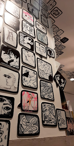 테마도 아주 신기해요! 망가는 물론, 서부권 만화들도 있고 이탈리아권 만화작가들 작품들도 진열되어 있습니다. 전 그림에 소질이 별로 없어서 못해도 원하신다면 스케치북이나 플라스틱 타일에다가 그림을 남겨두고 갈수도 있어요!