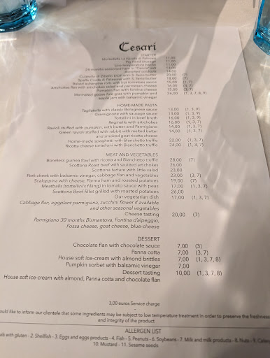 Read moreLovely dining experience. We were very, very lucky and got a table without reservations after someone didn't show up for their reservation. Make reservations, this is a must dining experience! Our host, Ricardo, was a pure delight! A man that knows his calling in life and that is to make people feel welcomed and at home. He greeted us, and every other guest, as friends! He took time to chat with every table and make everyone feel like family. It was obvious that the locals love him and his personality and he has many, many locals as regulars! Even more reason to get a reservation 😉 Our server was Francisco! And he was as amazing as Ricardo. We looked at the menu and definitely wanted to try food we wouldn't be able to get anywhere else. We had our thoughts and his recommendations matched them perfectly. His love of food and sharing it was wonderful. A special of cold asparagus and eggs was our first delight. Soft cooked, delicate asparagus covered with a delicious egg salad. Next was our best dish in Italy to date... Artichoke flan with baby artichoke salad. We love artichokes but weren't sure about combining it with a flan dish and nothing prepared us for this wonderful delight. If you order just one dish from Cesari, this must be that dish! Our most cherished dish was green ravioli with rabbit. We know anytime you can get rabbit you order it and this continues to be one of the most delicious food. It was perfectly cooked and scrumptious. A close your eyes and enjoy quality of cuisine... Another must order. We are thankful to have had such a wonderful dining experience in Bologna! And if we're ever back we are making reservations and coming to...