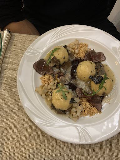 Read moreIl nome dice tutto: antica trattoria e la tradizione la vedi e la senti tutta nei piatti e nell'accoglienza, dal 1861 ad oggi. Il ristorante su due livelli offre tutto ciò che una trattoria deve e può offrire: convivialità e gioiosa allegria, come nel nostro caso, se riservi la sala al primo piano per grandi tavolate di amici, appartati dalle sale inferiori ma premurosamente "coccolati" dalle attenzioni dei ragazzi di sala, così giovani ma già così appassionati, oppure atmosfera più raccolta e intima per pranzi e cene a due o più in sale arredate con gusto un po' retro ma con attenzione e pulizia Da Sandro: Patron del locale che sapientemente guida sala e cucina attraverso i piatti tipici bolognesi in alcuni casi di gran livello. Al Navile: naviglio che corre lungo la ciclovia in alcuni tratti suggestivo e che regala alla trattoria un fascino "agreste" riprodotto dal dipinto sulla facciata dell'ingresso. Quasi sembra di essere in campagna nonostante si sia a soli 3 km dal centro di Bologna, in un'atmosfera quasi bucolica. E poi si entra e si degusta, dagli antipasti al dolce e si sorseggia del buon vino fra chiacchiere, aneddoti culinari e allegria, proprio come insegna la dotta e grassa Bologna. Grande affettato bolognese, immancabile la mortadella Bologna e bocconi di Parmigiano Reggiano per cominciare, con una bella bolla di Prosecco millesimato per "sgrassare". Si continua col mito: tagliatelle al ragù Bolognese, tortellini in brodo di cappone, gramigna verde con salsiccia STRA-TO-SFE-RI-CI! I tortellini sono da applauso anche nel servizio, portati nella zuppiera e versati col mestolo nei piatti al momento. Molto buono anche il risotto allo zafferano con bocconcini di coniglio, fiori di zucca e scamorza affumicata, abbinamenti arditi ma molto gradevoli al palato. Sempre nel segno della tradizione si passa ai secondi: cotoletta alla bolognese, la foglia morta che di morto ha solo il nome, fettine di filetto gustose su piatto caldo e funghi porcini freschi se di stagione oppure con carciofi. A questo punto è d'obbligo un Sangiovese in purezza autoctono di grande spessore, giustamente tannico e avvolgente al palato. Consiglio vivamente di riservare un posticino al dessert che sicuramente sarà degna conclusione del vostro menù. Uno straordinario gelato artigianale alla crema mantecato con acrto balsamico di Modena e il servizio fa parte integrante della gioia gustativa: la mantecatura è realizzata direttamente al tavolo sotto i vostri occhi e versato dalla ciotola a cascata in un bicchiere per la degustazione di nuvole leggere e "pannose" che scendono una sull'altra. Non vi racconto la fine del gelato rimasto nella ciotola dopo il servizio! Che dire Sandro al Navile rimarrà negli annali come un posticino del cuore perché evochera' non solo ricordi piacevolissimi dei miei colleghi "Artisti" (loro sanno) ma anche sapori, profumi e...