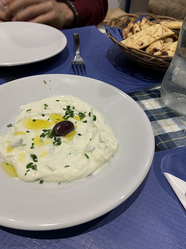 Read moreAbbiamo cenato in questo ristorante completamente rinnovato di venerdì sera Abbiamo ordinato per iniziare 2 antipasti della casa e 2 pite . Su 9 assaggini dell antipasto 4 erano salse ( antipasto buono ) le pite sono arrivate subito gli antipasti 10 minuti dopo quindi essendo noi in 5 di cui una bambina piccola avevamo finito le pite . Riordinate sono arrivate ad antipasto finito vabbe' ordiniamo 2 agnelli e 2 polipi più una pita farcita . Il polipo niente di che e la pita farcita dura e ricoperta da fette di pomodoro e un po di feta l ' agnello nel cartoccio era davvero poco e ricoperto da patate e altre verdure .il tutto molto asciutto e insipido . Arrivate le portate principali Abbiamo richiesto della pita che in primis si sono dimenticati di portarci poi una volta richiesta ci è stata portata bruciacchiata e quindi un po amara e per la seconda volta a pietanze finite . Prezzo troppo troppo elevato per la quantità e qualità del cibo . Al ristorante erano presenti qualcosa come 5 o 6 camerieri tranne il più anziano che si prodigava gli altri erano più intenti a fare balotta...