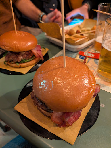 Amante degli hamburger particolari sono venuto a conoscenza di questo posto che attraverso prodotti locali ma sopratutto abruzzesi e marchigiani, creano dei panini fenomenali... Io sono riuscito a provare il Janis, €9, con burger di carne, patata dolce gratinata, friggitello piccante, cheddar alla birra, uovo, pancetta, porro e anello di cipolla fritto, è stato buonissimo... Poi prendo anche un sibylla, €8,con pane tostato col ciauscolo, burger di carne, caciotta, frittella di patate, friarielli e maionese alle erbe, indescrivibile... Infine prendo anche un Gipsy €8, con burger di carne, scamorza affumicata, pancetta, uovo, cipolla sfumata al vino rosso e funghi misti, spettacolare Poi se volete finire in bellezza con un paio di euro in più provate anche le patate al forno, e capirete che questo posto è davvero sorprendente Qualità dei panini alta, molto alta, perché ad ogni morso si sente che sono davvero ottimi e si sentono i sapori di ogni ingrediente Per quanto riguardo il locale posso dire che il posto non è grandissimo ma ci si può sedere senza problemi ai tavolini o al bancone, ci sono tanti hamburger da poter provare o anche da creare, e poi I 2 ragazzi al bancone sono stati simpatici ma sopratutto gentilissimi e molto professionali nel darci le info per quanto riguarda gli ingredienti e gli hamburger Per ora posso dire che è la miglior hamburgeria di Bologna Consiglio vivamente e ci...