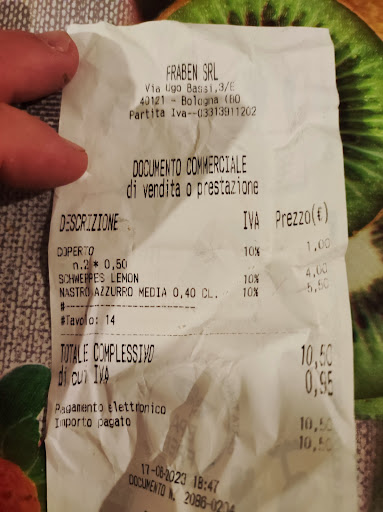 Read moreThe service was terrible. We waited for more than 40 minutes for just drinks. The waiter seemed high, we couldn't even understand what he was saying (I'm italian btw), he managed first to loose the order and then, after bragging about not spilling a drink, spill it... I ordered a Sbagliato and the waiter, being confused between a Negroni sbagliato and a Spritz sbagliato, didn't bother to ask which one. Thank God he lost the first order so the second time I could specify it. The service costs 1€ each, but they just brought us chips for the aperitivo. The counter was "broken" so we couldn't pay separately for some mysterious reason. Awful place,...