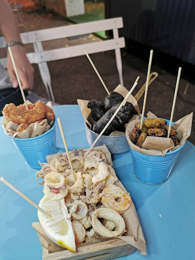 Read moreAttraverso un post di un amico, scopro questo posticino vicino porta lame che frigge la qualunque... Così vengo con un amico, e grazie anche alla comprensione e gentilezza del ragazzo in cucina, prendiamo TUTTO il menù, e dico tutto per davvero, anche perché alcune cose ci sono state fatte come meta porzione così da provare tutto in una volta. Allora prendiamo: Jalapenos verdi Jalapenos rossi Polpette di melanzane Fritto misto Gamberoni argentini Cozze Baccalà Gorgonzola Mortadella Spicchi di patate Foglie di salvia Pepite di guacamole Triangoli di verdure Funghi Anelli di cipolla Bastoncini di pollo Cubetti di crema pasticcera Formaggio halloumi e che dire, allora sicuramente siamo usciti sazi da questa cena, però devo dire che alla fine era tutto buono, chi piu e chi meno ok, però le cose che mi hanno fatto impazzire sono state la mortadella fritta, i bastoncini di pollo fritti, forse i più buoni della mia vita, e i gamberoni argentini .. anche la ragazza che aiutava è stata molto gentile quindi...