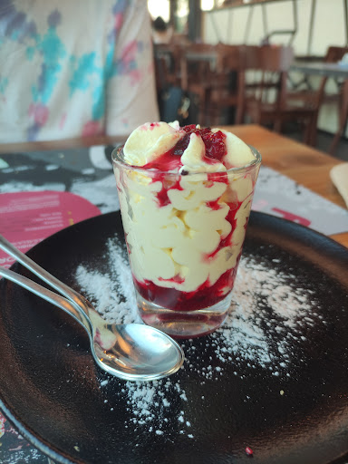 Il cibo era particolare, purtroppo, del tutto non vegan friendly. Oltre le patate non c'è letteralmente nulla per i vegani. Ed è strano perché hanno un sacco di piatti, invece, per i vegetariani. Mi sono dovuto improvvisare un panino modificando un piatto vegetariano ma il risultato non mi ha particolarmente convinto. La cosa più buona era il pane del panino, davvero molto buono. Ho chiesto anche agli altri cosa pensavano del loro panino. Eccetto uno, nessuno ha dato un parere privo di critiche. La cosa che più mi ha deluso è la salsa guacamole. Fondamentale mi aspettavo la classica salsa guacamole, invece mi è arrivata una salsa rossa piccantissima, l'avocado non lo si sentiva per niente. Forse la cameriera me lo ha anche detto che è piccante, anche se non lo rammento, il problema è il solito, troppo rumore, è facile che non abbia sentito nulla nel caso. Io chiesi nel hamburger quella salsa... praticamente non ho sentito nessun altro gusto eccetto quello della salsa, peccato. Le patate, invece, erano molto buone, rustiche e con la buccia come piacciono a me, croccanti e cotti al punto giusto.