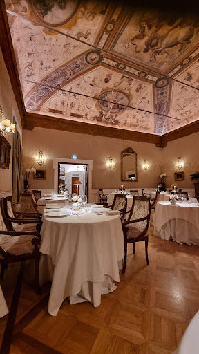Read moreWe ectually felt uncomfortable here. As we arrived, the receptionist took our coats. We really dressed ourselves for this dinner, as we were celebrating our anniversary. But the maître never even mentioned anything? Except for a younger servant, he did mentioned it. And he was the only one who talked to us. The room is very grand and the ceiling has a beautiful painting. The tables look very sharp, everything is in the right order. The Maître was very stiff and for us not a fun person to have at our table. The service was very fast. We choose the menu of €120. And had a bottle of red wine from Tuscani; Le Volte. This wine was suggested by the Maître, which was actually a very good choice. Along the dinner there were 2 other tables and another couple came during our dinner. For us it was unbelievable. Because the young man took his sweater of and was sitting there in a T-shirt!? What was going on? We were al dressed up for a high standart restaurant and here they accepteren someone to sit in his underwear? (What is the dresscode here?) If that wasnt enough, the young couple turned their Mobile Phone on. So we could hear some loud noises from their Phone. Nobody from the restaurant staff said anything!? It makes us mad to say this. But we decided to finish our meal and leave the restaurant as soon as possible. Sorry to say this, but something wasnt right and its a shame. Because everything looks so well managed but...