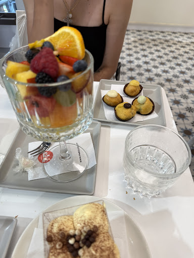 Read moreThe place looks nice and promising from the outside... although it’s somewhat completely different. I saw people getting served so I seat outside like everybody else. I wait for 10-15 minutes and no one came to serve me. I call the waitress a few times and nothing.. so I went inside. The queue was long, I purchase a latte macchiato and a brioche. The coffee was a little bit cold and the brioche was really good. When I wanted to take the two things with me outside, I asked for a waitress and they said that wouldn’t be possible, the same to take a tray with me to carry everything. I think grab and go would have...