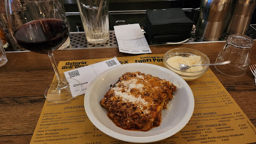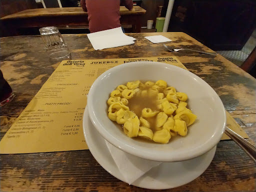 Siamo stati indirizzati qua dall'osteria dell'orsa spacciandola per la medesima proprietà, tutto bene finché non scopro che la cucina non è la stessa e che a quanto pare entrambi i locali prendessero la pasta da un pastificio sito tra i due locali all'interno di un portone condominiale. Vabbè si commenta da solo. Vabbè antipasto centrale con 3 fette di mortadella, 4 di salame di bufala, 4 di gorgonzola e 4 brie con un misera porzione di miele e marmellata con 4 fette di pane alla "modica" cifra di 18 euro. Proseguiamo con una "cotoletta" spacciata per bolognese, per ognuna di esse venduta credo muoiano 10 bolognesi. Una cotoletta, unta servita con SDA bernese credo e ketchup, oltretutto ricoperta con della besciamella o qualcosa di simile. Che se proprio vogliamo considerarla come variante dovrebbe avere una consistenza dovrebbe essere saporita e con una bella consistenza, quella invece aveva la parvenza di un di mix di panna e butto insapore. Ma vabbè stendiamo un velo pietoso. Al momento di ordinare di caffè e amari ci viene detto che la macchina del caffè è stata sostituita da un frigo per i vini che in un posto che scrive in menù caffè, orzo e ginseng 1.20 € e che oltretutto si chiama Jake box caffè, fa abbastanza ridere. Ma vabbè stendiamo ennesimo velo pietoso. Gli amari, almeno si pensava avessero una selezione minima di amari basic, invece anche lì delle lacune dato che mancava sia l'amaro del capo e il branca menta, per poi dirottarci sotto consiglio del cameriere su un amaro di cui non ricordo neanche il nome e per di più sul fondo del bicchiere dei pezzi solidi di posa, sicuramente era "invecchiato al punto giusto". Morale della favola un antipasto in quattro, due bottiglie di vino, 2 primi e 4 cotolette alla NON bolognese, il tutto 176...