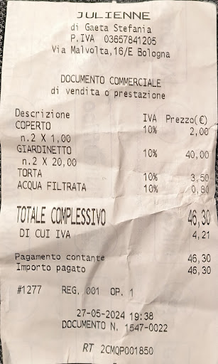 We arrived at 7pm, the place was empty and we were the only people there apart from the owner and the cook. She told us they are cooking for tomorrow as not many dishes left so she can make us a mix plate with a little portion of different dishes so we can taste. After seeing the prices of the dishes between 6-7€ we didn't bother to ask how much is a mix plate regular size. We order a little bottle of water and a piece of cake. When I asked to pay the bill was 46€! I paid and asked how much was a mix plate and she answered 20€ each. It's not showing anywhere and we didn't think to ask how much is a mix plate when she offered it to us. Such a scam, we never had this type of experience specifically when we love to support vegan and bio restaurants. Shame on you little woman! *A response to the owner's comment : You are a classic con artist! Never relate to the subject's discussion,always justify your scam action! My review wasn't for you to improve anything, it's for the future customers to insure they will not fall for the trap you set us. You keep justifying the cost of the food but this is not what my review is about. The review is about hiding the cost when you offered us the leftover food to taste. As I try to talk to you in the restaurant,maybe the food is worth 100EUR but do your customers have the right to know before you charge them? I took the blame for not asking the price as this option is not showing anywhere but do you have a responsibility to tell your customers how much it is before ordering? As I said,this review is not about the quality,the worth,the atmosphere or anything else that you mentioned,it's about your con artist behaviour and don't wave at me "The prices of Bologna". We are living in one of the most expensive places in the north of Italy, we know how much a good meal costs in a restaurant,nothing like what you charged us,criminal woman con artist!