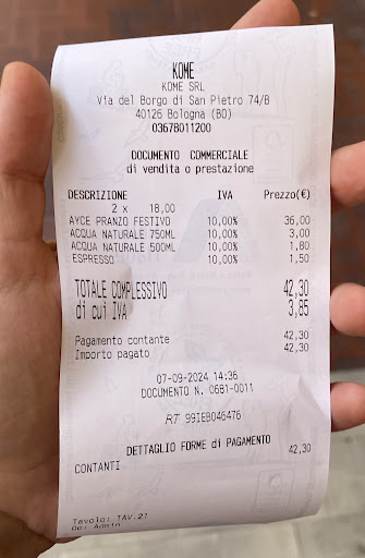 Il conto è giusto, ottimo rapporto qualità prezzo. In due 64 euro compreso di bevande e gelato. 27 euro il menù all you can eat, leggermente più alto della concorrenza, ma personalmente avrei potuto pagare anche di più.