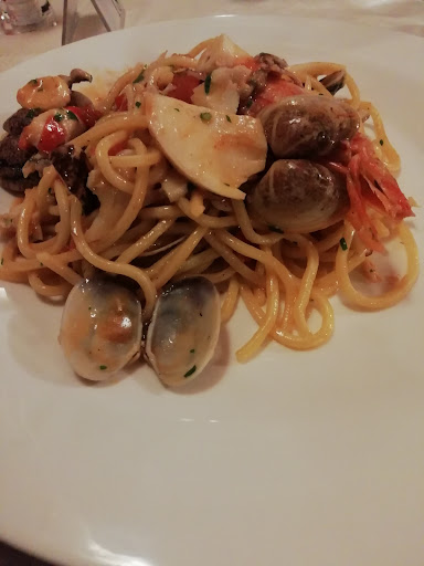 Read moreLocation bellissima e personale impeccabile... Il cameriere, credo il caposala, di molte parole, affabile... Tutti bravi e disponibili..nulla da dire... Purtroppo ho preso un piatto di pasta con le vongole, che sono arrivate quasi tutte spaccate a pezzi e ho passato tutta la sera con le mani in bocca a togliere tra spaghetti e vongole i piccolissimi pezzi di guscio spaccati .. errore mio che non ho rimandato indietro il piatto e non ho detto nulla quando il cameriere è arrivato a chiedere come andasse... Però anche il cuoco poteva non servire un piatto del genere a mio parere!!! Mi sono fatta più volte male masticando... Per il piatto del mio compagno non ci lamentiamo del tipo di piatto perché molto particolare, ovvero salato e dolce insieme. Diciamo che ha sbagliato scegliendo qualcosa del genere.. Era un Fritto misto di carne,verdure e dolci.. La lamentela era x quello che c'era dentro... Due" pezzetti " di carne .. solo cavolfiori crudi impanati e fritti..(crudi!!) e qualche verdurine fritta e poi questi 4 dolci .. Eran più verdure fritte che carne... Abbiamo scelto questo ristorante perché vicino all'autostrada, comodo x il viaggio che stavamo facendo e perché cercavamo qualcosa con giochi per bambini, ma purtroppo il bimbo di età 4 è rimasto male vedendo uno scivolo e 4 dondolini x bimbi moltoooo piccolini... Avevamo cercato su internet un posto appositamente con qualcosa x lui.. Ma ci ha fregato quel che...