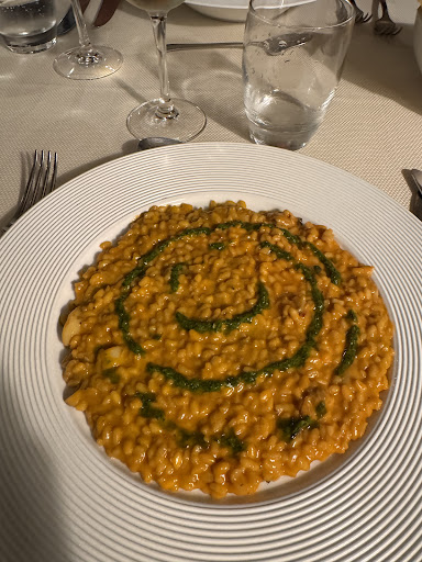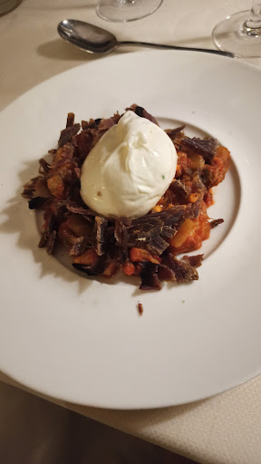 Prima nota dolente (che non dipende da loro, ma è bene tenerne conto per la valutazione generale) il locale si trova in una zona in cui è estremamente difficile trovare parcheggio. Siamo in una piccola piazzetta attorniata di palazzi. Location interna carina, abbiamo mangiato nella terrazza fuori, coperta, in cui si stava abbastanza bene nonostante il caldo di questi giorni. Personale davvero molto cortese e professionale, ottimo servizio. Eravamo in tre, abbiamo preso un antipasto (gamberi in pasta kataifi per tutti) e un primo a testa (anzi due primi e 1 secondo). 1 bottiglia da 37,5 cl di Grillo (inizialmente portato nel secchiello ma SENZA ghiaccio perché era finito, poi hanno mezzo risolto il problema), 1 solo caffè per me, niente dolci e/o amari, abbiamo speso ben 47€ a testa. Buoni i gamberi e ben impiattati. La caponata con mosciame di tonno e burrata non l'ho trovata buona purtroppo, poco saporita la caponata e il forte sapore del tonno (che di per sé apprezzo) copriva gli altri gusti, soprattutto la burrata. Peccato sembrava un piatto interessante. I primi sono stati apprezzati dai miei commensali, ma senza particolare lode. Diciamo che per quanto speso mi sarei aspettato di più. Non è un giudizio in generale su questa struttura, che peraltro mi sembra meritevole, ma solo sulla mia esperienza...