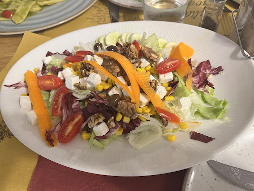 Read moreWe arrived late for dinner, ordered pizza to start as we were on our mini pizza tour of Italian cities and read this was the place to have the best pizza in Bologna. So asked for Margarita first, then mains of veal, pasta & pizza to share. So basically it all came out at once, so quick I couldn’t blink my eyes (faster then a McDs:)). We didn’t comment, pizza tasted good BUT could of been cooked longer, pasta was undercooked as it was quite tough to cut even with a fork, veal was loved by meat eaters, and salad was mid…I mean iceberg lettuce and tinned sweetcorn - I thought I was at a Pizza Hut salad bar?! Food was no nowhere as good as expected but still ok, but what was awful was the service…whilst we had our food thrown at us (I thought it was because we arrived late), we left and saw other dinners enjoying their courses, I guess the waiter(s) just didn’t like us. Maybe because we didn’t order...