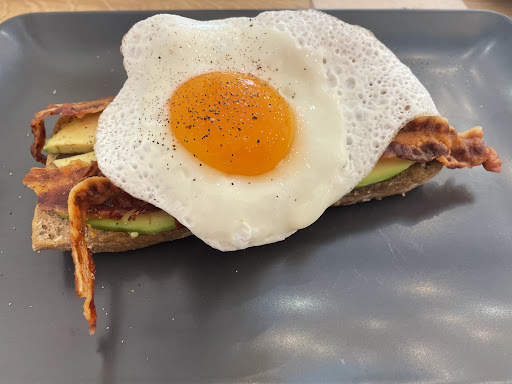 Moving on to the food now, I took an avocado on toast, which has a fried egg on top and strips of crunchy bacon (sorry 🐷s).
