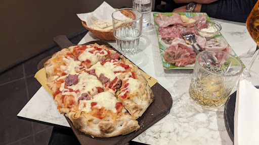 Sabato sera pieno, evidentemente troppi coperti in più rispetto a quelli che potevano gestire, quindi servizio pessimo. Ci sono solo tre voci sul menù, dopo aver ordinato tardi e atteso altrettanto (nonostante avessimo prenotato una settimana prima), cominciano a servirci e dopo aver servito due terzi del tavolo ci dicono che avevano finito gli hamburger, quindi quattro di noi rimanevano senza, in alternativa avremmo dovuto ordinare un menù pinsa (farcita da menù e invece era margherita) o un menù ribs a 6 euro in più rispetto al menù hamburger. Gli diciamo che va bene ma che paghiamo per quello che abbiamo ordinato. Magicamente gli hamburger ricompaiono. Erano buoni, però erano accompagnati da poche patate crude. A un certo punto il vocalist dice che da quel momento per dieci minuti ogni bevuta al bancone sarebbe costata solo 5 euro, non fu vero, perché arriviamo lì dopo aver fatto uno scontrino generico da 5 euro e la scelta era limitata. Ogni cameriera diceva una cosa diversa. Terribile. Se tu hai centinaia di coperti il sabato sera e hai solo tre voci sul menù, due opzioni di bevande e un unico dolce, non ti può finire la roba e dirlo dopo un' ora e mezza che quel tavolo si è seduto. Il vino ce l' hanno portato aperto invece di aprircelo al...