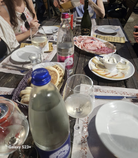 Read moreNon male, una bella osteria alle porte di Bologna sulle colline. Ci sono dei grandi tavolacci all'aperto con delle grandi panche per sedersi e degli ombrelloni come copertura. Il caldo comunque in questi giorni è già molto forte quindi fate attenzione, se venite per pranzo, a portarvi un cappello. Trattandosi di un'osteria, la scelta gastronomica è limitata ad alcuni primi e ad affettati con tigelle, gnocchi modenesi e crescentine come secondo. Sono presenti anche dei dolci. Si può scegliere fra quattro marche di birra in bottiglia. È presente un ampio parcheggio sopra la collina situata di fianco all' osteria. Deve trattarsi di un posto molto noto fra i bolognesi e piuttosto frequentato. I prezzi, tuttavia, non sono proprio bassissimi, come ci si aspetterebbe da un osteria, tanto che abbiamo confrontato il costo rispetto a un ristorante con una scelta più ampia sito nella zona del parco Gessi, dove siamo stati in precedenza, e ci siamo accorti di avere speso praticamente lo stesso, ma nel ristorante avevano mangiato anche una grigliata mista in più rispetto all'osteria. Ottimo primo, anche se un po' pesantino, le rosette (una sorta di cannelloni preparati con la pasta delle delle lasagne, farciti con prosciutto cotto e una besciamella molto ricca). Molto bella la vista che si gode sulle colline dalla strada antistante l'ingresso. A conti fatti, nelle prossime visite a Bologna, opterò per...