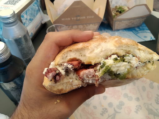 Read moreSi presentano come il primo fast food ittico italiano ma come qualità dei prodotti si discostano alquanto da tale tipologia di merchandising; in questo locale è possibile mangiare materie prime di qualità, cucinate con condimenti e contorni che ne esaltano la bontà, il tutto servito in comodi contenitori da asporto. L'unica affinità con gli altri fast food è la celerità nell'offrire prodotti cucinati espressamente (10-15 minuti circa) ed appunto la modalità in cui si eseguono gli ordini: dopo aver fatto la fila si fa la propria ordinazione alla cassa, ci si accomoda al tavolo ed il tutto viene portato al tavolo dal personale di sala con packaging da asporto, in materiale ecosostenibile, che permette un abbattimento delle spese di gestione a favore della qualità del cibo; è possibile mangiare pesce di qualità ad un prezzo veramente competitivo. Il locale si presenta colorato e vivace, il personale è cortese e rapido, pronto a soddisfare le richieste del cliente. Già mi pento di non aver comprato niente da asporto per la cena, non vedo l'ora di tornare a Bologna per assaggiare altre loro specialità; spero che aprano presto un punto vendita a Firenze per poter diventare loro cliente abituale!!😋