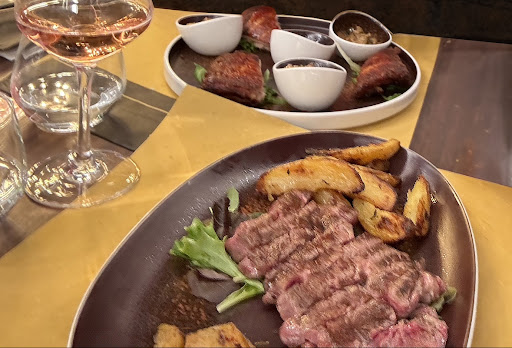 La carta dei vini, ampia e ben articolata, offre abbinamenti sapientemente studiati, confermando una ricerca attenta e mirata. Tuttavia, le aspettative hanno subìto un drastico ridimensionamento con l’arrivo dei secondi. Il "lingotto di Wagyu", evocativo nel nome di una forma precisa e curata, è stato servito invece come una semplice tagliata, priva della raffinatezza e dell’impatto visivo che il piatto avrebbe dovuto garantire. La "pancia di maialino al latte con cotenna croccante" ha confermato un’esecuzione poco convincente: la carne, gommosa e priva di sapore, e la cotenna, lontana dalla promessa croccantezza, hanno compromesso l’equilibrio complessivo del piatto. Il confronto con lo stinco croccante della visita precedente, decisamente più riuscito, è stato inevitabile e impietoso.