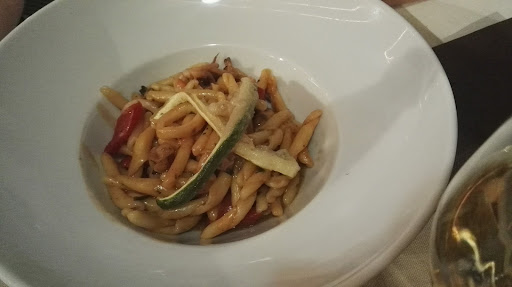 Gentilezza assoluta e ottima cucina! Piatti strepitosi! Cena di coppia, ci siamo messi sotto il porticato e si stava da dio, viste le temperature di questo periodo. Atmosfera accogliente, locale completamente rinnovato e arredato con gusto. Siamo stati serviti subito con gentilezza da una ragazza che ci ha fatto ordinare subito, portandoci poco dopo due abbondanti calici di una buona falanghina, dei panini fatti da loro e l'entrè offerto dalla casa: ricotta mantecata su salsa di piselli con riduzione di aceto balsamico e paprika, aprezzatissima soprattutto per il gesto di offrire qualcosa come benvenuto. Come antipasto abbiamo preso gamberi su salsa di cannellini e sorbetto alla mela verde: SPETTACOLARI. I gamberi erano davvero di qualità eccelsa e cotti perfettamente, morbidi e saporiti, e l'accoppiamento con la salsa di cannellini e il sorbetto alla mela verde era semplicemente perfetto! Altro antipasto: polpo su salsa rossa con cipolla rossa e petali di pomodorini, anche questo molto buono. Come primo abbiamo preso degli strozzapreti ai frutti di mare con verdure croccanti (zucchine pastellate e fritte), anche questi erano veramente fantastici: saporitissimi, pieni di pesce, gustosissimi, mantecati perfettamente, si era venuta a creare una salsina di pesce che rendeva il piatto una meraviglia, tutto perfettamente unito nel creare un gusto unico, ogni boccone era una gioia. Come secondo abbiamo preso trancio di orata e di branzino, su salsa di porri e patate e verdure in guazzetto, cotti molto bene, apprezzata molto la pelle croccante resa parte del piatto. Infine come dolce dell'ottimo tiramisù alla nocciola con croccante di cioccolato e una guarnizione di caffè, buonissimo e abbondante. Il prezzo finale è onestissimo, soprattutto considerato la qualità dei piatti che ti vengono serviti. Andateci assolutamente! Hanno aperto da poco e hanno tutta la voglia di diventare un grande posto, sono queste le attività che...