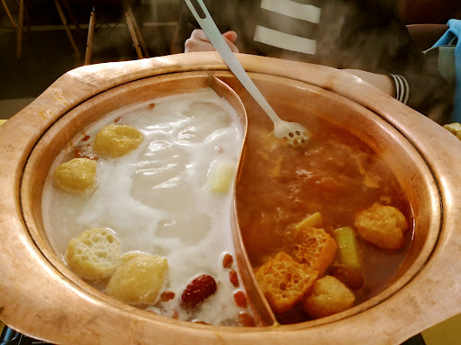 Wow! As a first impression, when you find so many chinese people in a chinese restaurant it should mean that they cook in a good and traditional way. I came here on a recommendation from a friend, because the place is not so easy to spot and the front is a bit anonymous. But it was worth it :) the flavours I tasted in the hot pot were absolutely new and impressive! We took two different broths, the traditional one with meat flavour, and a tomato-flavoured one. I can really recommend both :) Also, the staff was really available. As it was my first time eating hot pot, they really took care of explaining cooking times and how to cook each ingredient, and how to match sauces with the kind of broth. I will surely come back, and I...