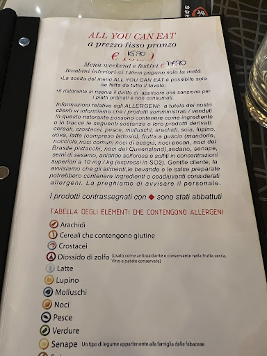 Our group planned to order a few items per person and share, and were told by the staff that the all-you-can-eat option would be the most economical option based on that plan. Unfortunately, the portions were larger than they had said they would be (we specifically asked about portion sizes while ordering), and we were unable to finish. When we asked about taking away the miscellaneous leftover items from the various plates, they told us there would be an extra charge of €20/per person for that. When we declined, they said the same charge would be applied for not finish in the food. We had not been informed of this policy in advance, and it essentially doubled our bill. The menu we were later shown (pictured) as justification states this, but this is a different menu than what we used to order (we were shown a menu with a different price for the all-you-can-eat option, and without the explanation of extra charges). I am including a picture of the latter, with the additional details, for the awareness of future diners. Overall, while the food was fine (I’ve had better, but in Japan, and this is of course Bologna), we felt quite deceived by this, and...